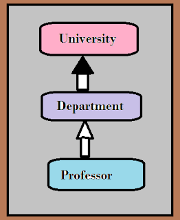 From the above figure, there are three classes Department class,University class and Professor class. The University can not exist without Department that means it is strong relationship between them. In other words the lifetime of University depend on the lifetime of the department class. The second association represents "weak-type" between Department and professor class. Since department is not depend on the professor this is called as composition association.