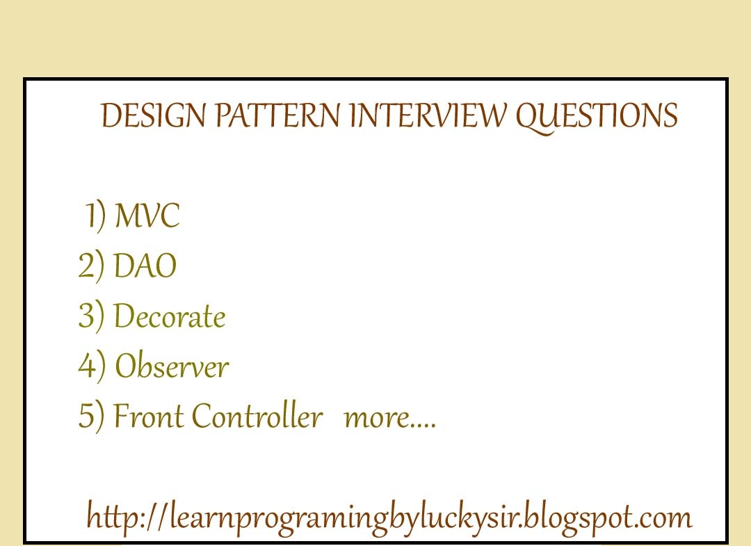 In this Page, we will learn frequently asked Design Patterns Interview Questions, which are most managers expect from their developers to have depth knowledge on important patterns. These Interview questions are asked in various java interview.